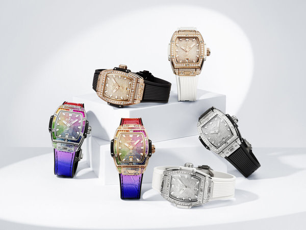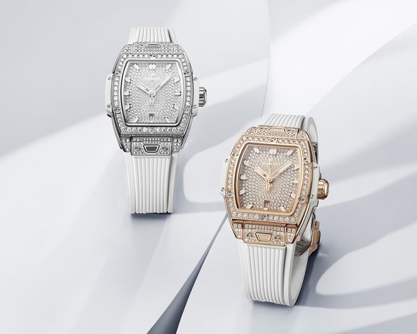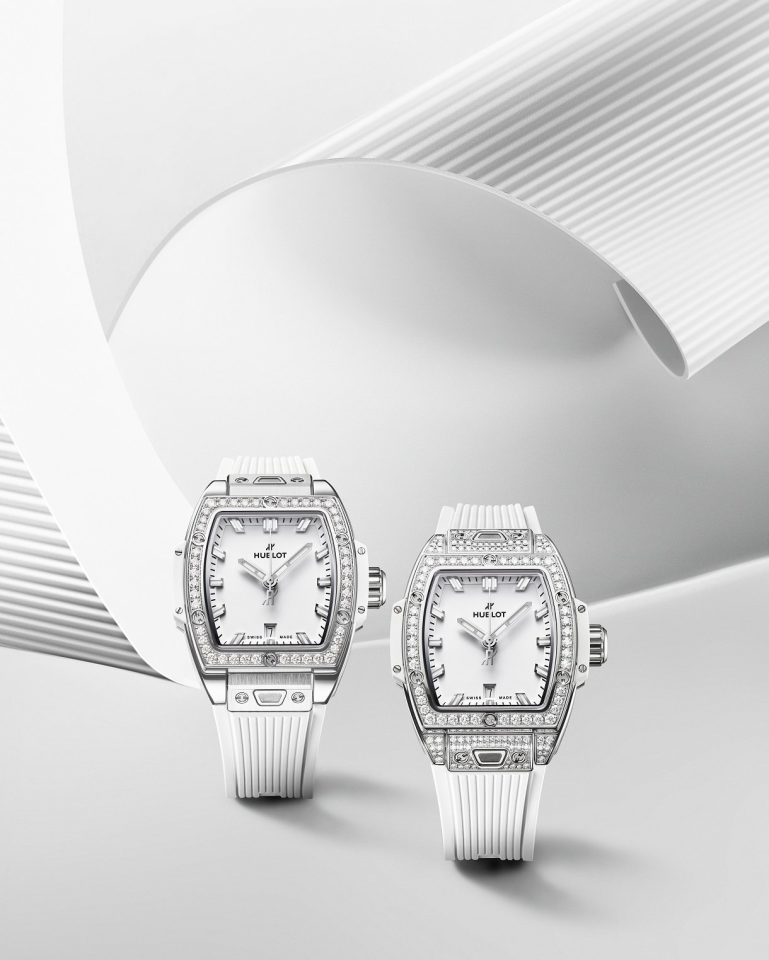 تتوفر هذه الساعة من 8 قطع، تتميّز بالميكانيكيّة المتطوّرة والأسلوب الأنثويّ الأنيق. تتزيّن القطع الجديدة بسوار مطاطيّ بلونيّ Hublot الكلاسيكيّين: الأسود والأبيض.