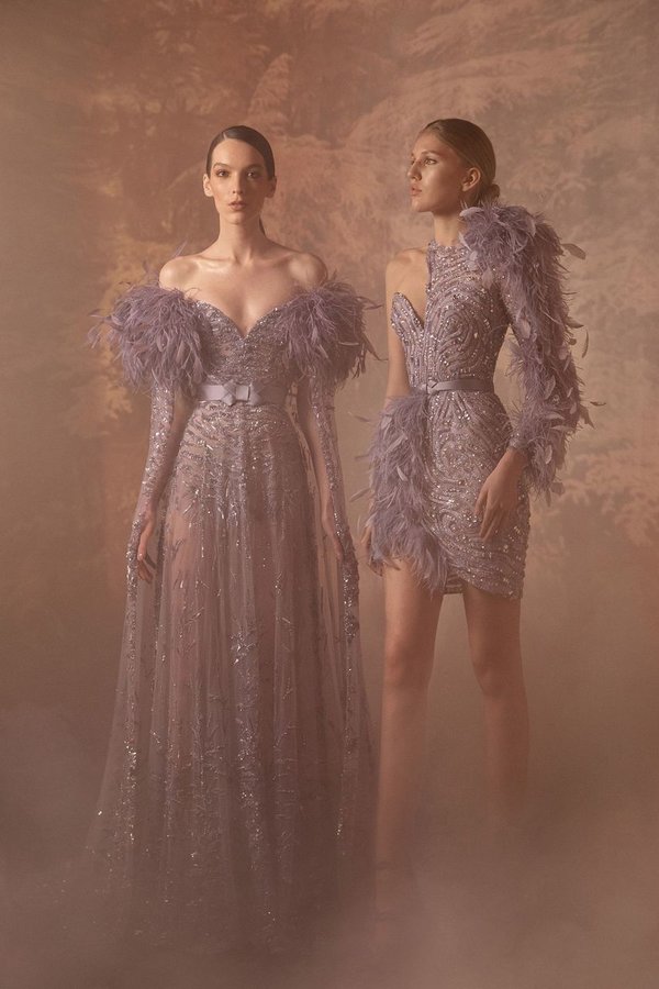 من وحي غابة يكتنفها الضباب فجـراً، تخــرج ألوان مجموعة الهوت كوتور من وهير مراد لصيف 2021، في لوحة رسمها بالأزرق والـزهـري الفاتحين، والبيج الرملي بظلال رمادية، والأخضر المتراوح بني الزاهي والداكن، والألوان الفضية كلحاء الشجر والنسغ وقطرات الندى.