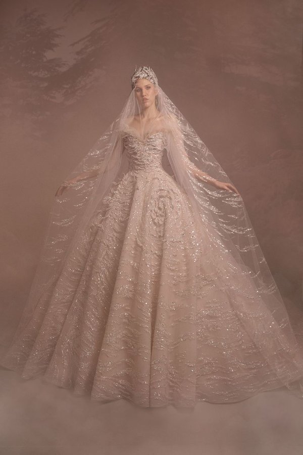 أما عروس 2021 من زهير مراد ستتألق بفستان بالأبيض المائل إلى الزهـري الذي يشع بتفاصيله الفضية.