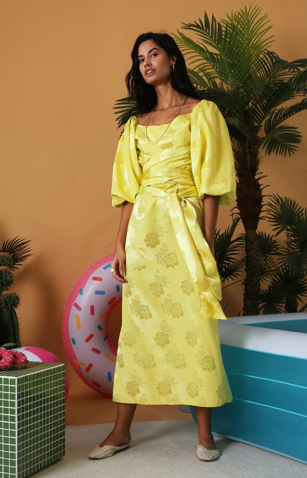 إن إحدى أكثر الميزات لفتاً للنظر هي جمع طبعات غير مألوفة ومزج ألوان باستيل مختلفة. فالتصاميم بأشكال الزهور، وتنسيق الألوان، والتصاميم المجردة، كما الزخارف البحرية وتلك التي بشكل الطيور، تبرز على الموديلات الواسعة والتفاصيل الرائعة مثل الياقات المهدبة والأكتاف المنتفخة. وبالإضافة إلى الملابس الجميلة، طُرحت مجموعة من عصابات الرأس المفتولة من الحرير الأصلي لتكمل القطع التي تعتبر مثالية للمناسبات الرسمية أو لقضاء يوم عادي على الشاطئ.