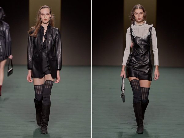 أتت مجموعة Hermès مزيج من الأزياء فرصدنا الشورتات القصيرة، المعاطف الطويلة، الجاكيتات على أنواعها إلى جانب الملابس الجلدية التي كان لها حصّة الأسد في الجامبسوت والفساتين القصيرة.