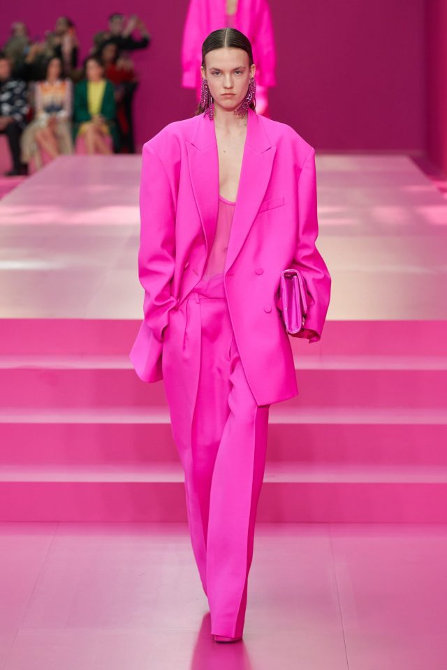 81 لوكاً باللون الوردي ويستايل المونوكروم شكل مجموعة خريف وشتاء 2022-2023 من فالنتينو التي تضمنت رموز الدار الأيقونية. تنوعت تصاميم التشكلية ما بين الكلاسيكية والعصرية فأتت التوبات بقماش مخرّم، المعاطف تحدد الخصر القمصان من الشيفون الشفّاف…