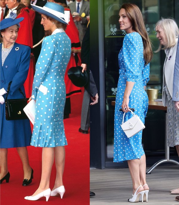 ظهرت دوقة كامبريدج آنذاك في اليوم التاسع من بطولة ويمبلدون للتنس لعام 2022 وهي ترتدي فستانًا منقّطًا من أليساندرا ريتش وحذاءً باللونين الأسود والأبيض، والذي كان يردد فستانًا منقّطًا باللونين الأزرق والأبيض من تصميم كاثرين ووكر ارتدته الأميرة ديانا عدة مرات. منتصف الثمانينات.