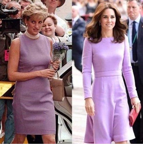 عام 2019، وخلال جولة لدوقة كامبريدج في أوروبا أردت في إحدى المرات فستاناً أرجواني اللون أتى نسخة طبق الأصل لفستان اختارته ليدي ديانا خلال جولتها الملكية في أستراليا عام 1996 بفارق بسيط أنه جاء من دون أكمام.