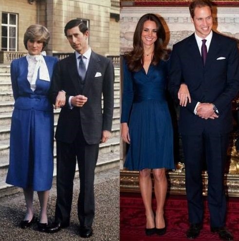 يوم إعلان خطوبتها من الأمير ويليام عام 2010، أطلت كيت ميدلتون بفستان أزرق قريب جداً من الفستان الذي ارتدته الأميرة ديانا يوم إعلان خطوبتها من الأمير تشارلز.