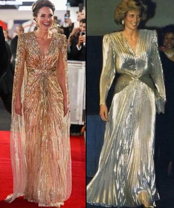 مؤخراً، وخلال مشاهدة العرض العالمي الأول لفيلم No Time To Die اختارت كيت ميدلتون فستاناً مشابهاً لفستان الأميرة ديانا مشاركتها في حفل إطلاق فيلم A View To Kill عام 1985.