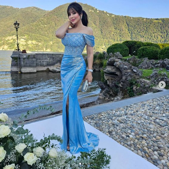 فساتين أنيقة وفخمة نستقها لجين عمران خلال إطلالتها في إحدى الحفلات مؤخراً، وهو فستان باللون الأزرق الملكي وبقصة أميرية.