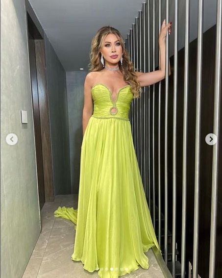 آخر إطلالات النجمة نوال الزغبي بفستان ذهبي فخم مميز، تصميم الفتحة الجانبية من الشراشيب الطويلة هي ابرز ما يميز هذا الفستان.