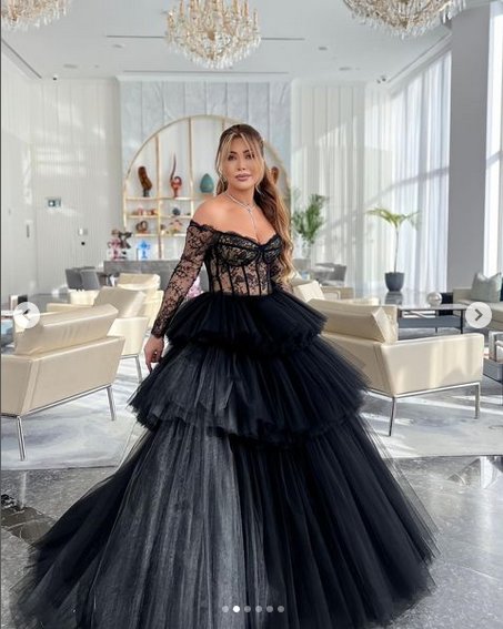 فستان اسود منفوش مميز وأنيق من تنسيق النجمة نوال الزغبي في حفلاتها الأخيرة في امستردام.
