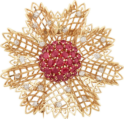 في الأربعينيات، قدّمت الدار تعابير أنيقة تسلط الضوء على مرونة الذهب وتألقه الشمسي على العقود وأقراط الأذن وخواتم فير آ شوفال وأساور بيل – إيلين المرصعة بالياقوت والسافير والماس.