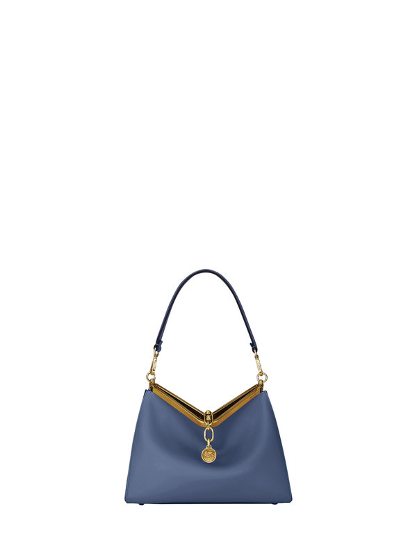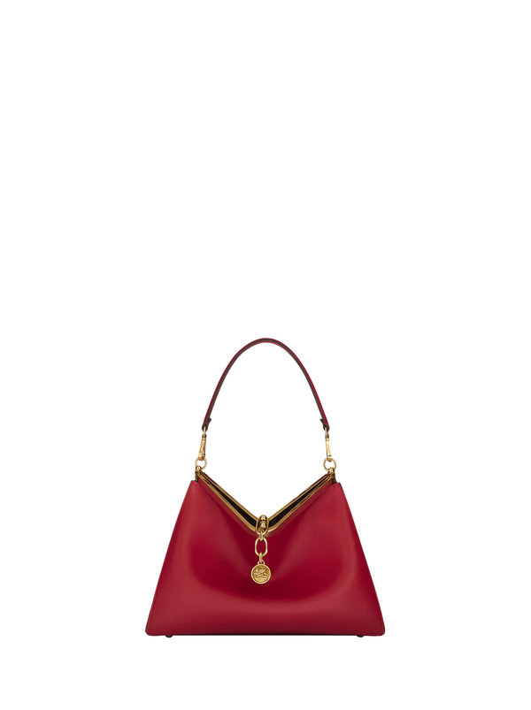 تتوفر حقيبة Vela من Etro بتدرجات اللون الأسود والعاجي والبني الداكن والألوان الموسمية المشرقة وهي مصنوعة من جلد العجل. وهي قابلة للإرتداء على الكتف أو بطريقة مائلة بفضل الحزام المزدوج القابل للتعديل.