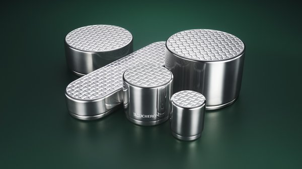 على عكس علب المجوهرات التقليدية، يمكن جمع هذه العبوات وعرضها كنماذج تشهد على هذا النهج الملتزم. وبما أن الماضي لدى بوشرون في تواصل مستمرّ مع الحاضر، فقد اعتمدت الدار على أرشيفها لتصميم هذا الابتكار الجديد الذي يحمل ملامح مستقبل مشرق. وقد استوحيت العلب من مجموعات التجميل في الثمانينيات، وتتّسم كلّ منها بسطح محكم يتميّز بأشكال منحوتة بدقّة بقطع الزمرّد، في إشارة دقيقة إلى رمز الدار الشهير الذي يمثّل شكل ساحة فاندوم كما تُرى من الأعلى.