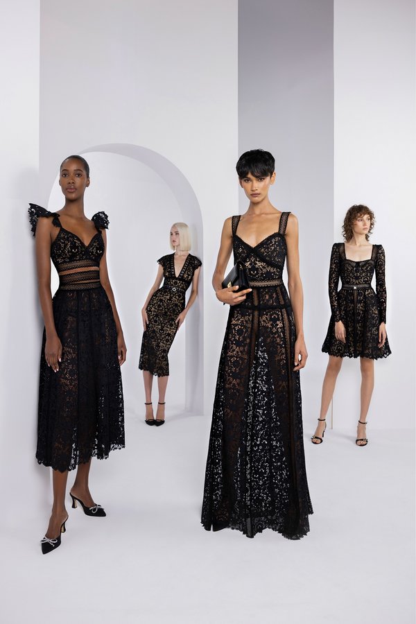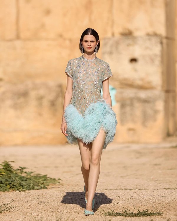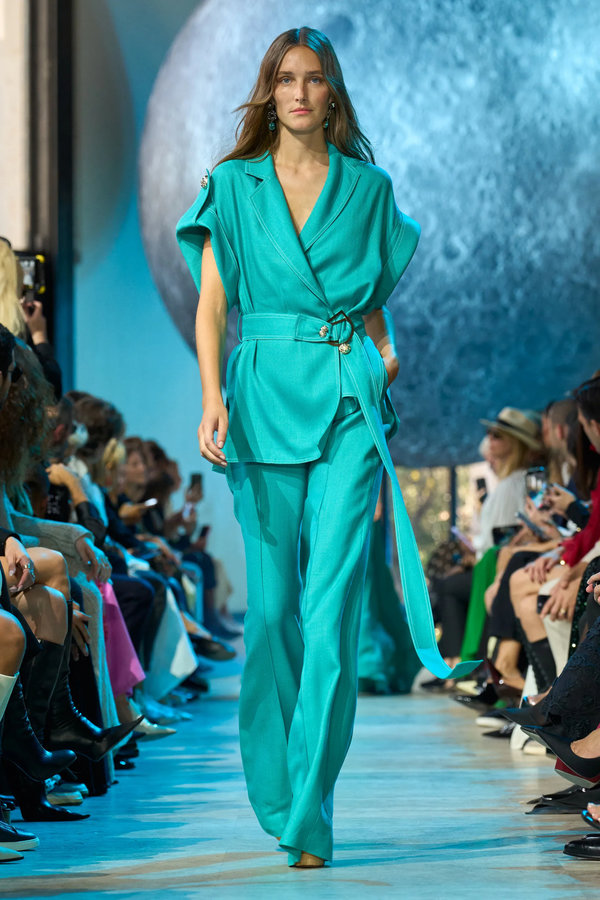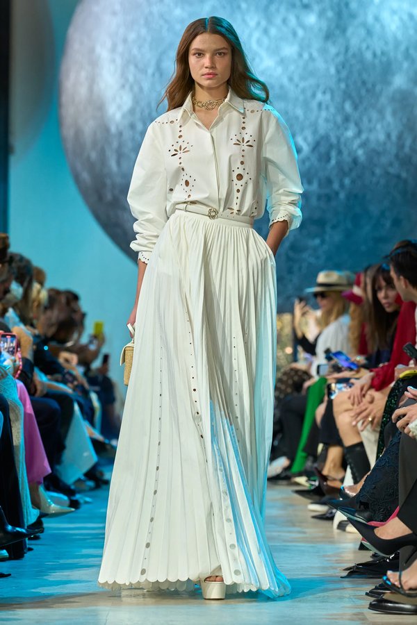 أما ايلي صعب فاستوحى مجموعته من القمر وعالمه الخاص حيث طغى على المجموعة الأقمشة المنقطة وكأنها الأحجار المنتشرة على هذا الكوكب إضافةً الى الكروشيه والتطريزات الضخمة التي يبدو أنها ترند صيف 2024.