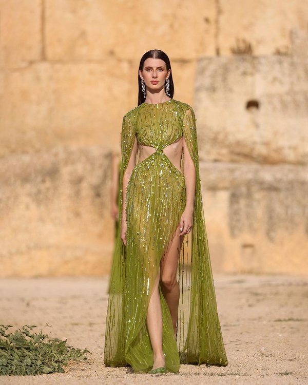 وفي قلعة بعلبك الأثرية والتاريخية قدم المصمم جورج حبيقة مجموعته التي تنوعت ألوانها مع التركيز على الـ Aqua مثل الأزرق الفاتح والأخضر الحشيشي إضافةً الى الإعتماد بكثرة على الأقمشة الشفافة.