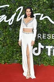 أدريانا ليما اختارت كروب توب وتنورة باللون الأبيض والفضي.