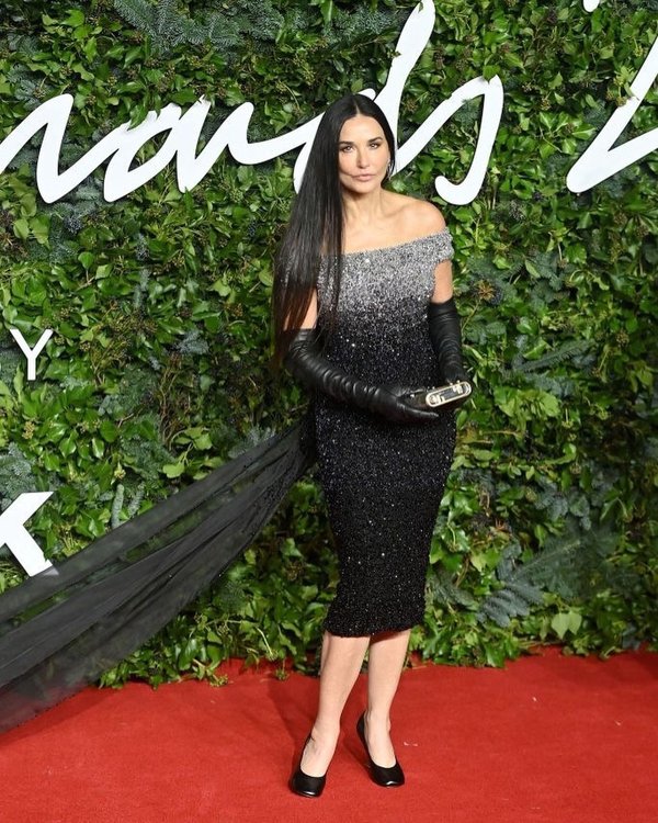 ديمي مور اختارت فستاناً ضيقاً بقصة الكتفين المكشوفين من علامة Fendi.