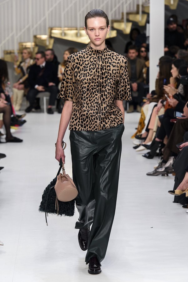 فعلامة Tod’s مثلاً نسقت توب بنقشة النمر مع سروال من الجلد في أسلوب مناسب للإطلالات النهارية.