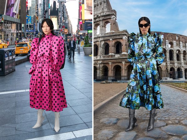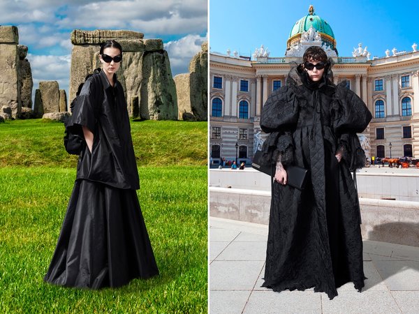 كما تشمل مجموعة بالنسياغا Balenciaga لما قبل شتاء 2021 على معطف أسود مبطن مستوحى من فستان الزفاف ومزّود بياقة طويلة وصلبة ومزدان بنقوش الورود والدانتيل والأشرطة التي تلتف حول الأكمام المنفوخة.