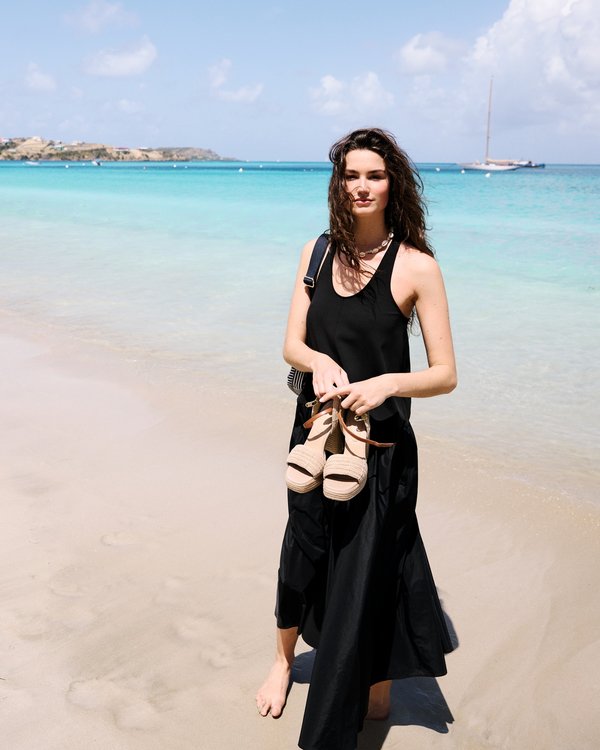 قصات كاجوال أنيقة، تعكس مجموعة لصيف 2025 الطابع المرح من خلال الفساتين ذات القصة المريحة التي تتميز بخفة الأقمشة، ما يجعلها خياراً مميزاً لقضاء العطلة على شاطئ البحر.