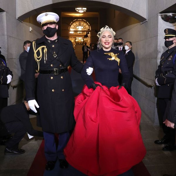 أما ليدي غاغا لفتت الأنظار إليها من خلال اعتماد فستان من علامة Schiaparelli، وقد اختارت البروش كأسسوار الذي أتي على شكل عصفور ذهبي الذي يدل إلى السلام.