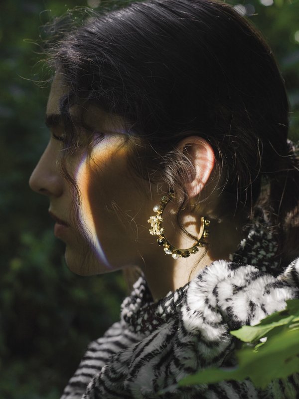 ولكي تكملي إطلالتك، لا تنسي معطف الفرو المقلّم بلونيّ الأبيض والأسود مع أزرار ذهبيّة. إذ يمكنك ان تستبدلي القراط المتدلية الطويلة بأقراط دائرية، بحسب ذوقك طبعاً.