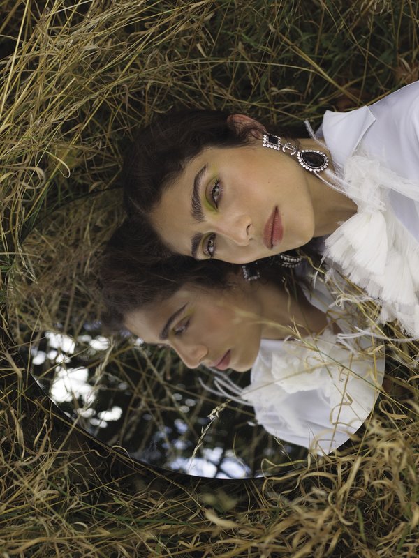 إذا كنت من محبات التنورة الطويلة التي هي من الصيحات الرائجة لهذا الموسم، هذه الإطلالة ستنال إعجابك وهي تتماشى جداً مع اجتماعات العمل أو المناسبات الرسمية وحتى الخروج لتناول العشاء. فقد نسقنا قميص باللون الأبيض بقماش القطن مع الكشاكش على الياقة مع تنورة سوداء بقماش حرير الجاكارد. ولأنّ إطلالتنا لا تكتمل من دون الأكسسوارات، اعتمدنا أقراط من المعدن والريزن وعقد من المعدن والجلد والزجاج والترتر.