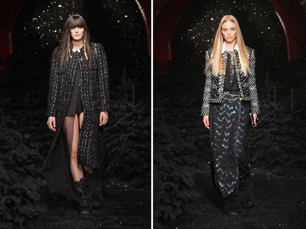 من دون فريق مساعدة، قدمت عارضات Chanel هذه المجموعة بأنفسهنّ التي تركز بشكل أساسي على فكرة الجاذبية والتناقضات بين الجرأة ورموز الدار الفرنسية.