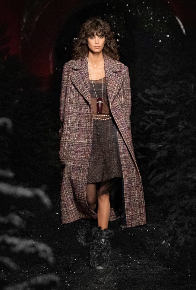 "أنا أحب التناقضات، لذلك أردت مساحة صغيرة لا أعرف ما إذا كان هذا بسبب الأوقات التي نعيش فيها، لكنني أردت شيئاً دافئاً وحيوياً. تخيلت العارضات يقدمن عرضاً لأنفسهن، ينتقلن من غرفة إلى أخرى ويتقاطعن مع بعضهن البعض في سلالم، ويضعن معاطفهن في غرفة المعاطف ويصعدن إلى الطابق التالي لتغييره. وفكرت في العروض التي كان كارل سيخبرني عنها، في ذلك اليوم، منذ زمن طويل، عندما كانت العارضات يرتدين ملابسهن ويضعن مكياجهن الخاص". بهذه الكلمات شوقتنا المديرة الإبداعية لدار Chanel فيرجيني فيارد لمجموعة خريف وشتاء 2021-2022. وذلك في اليوم ما قبل الأخبر من أسبوع الموضة في باريس.