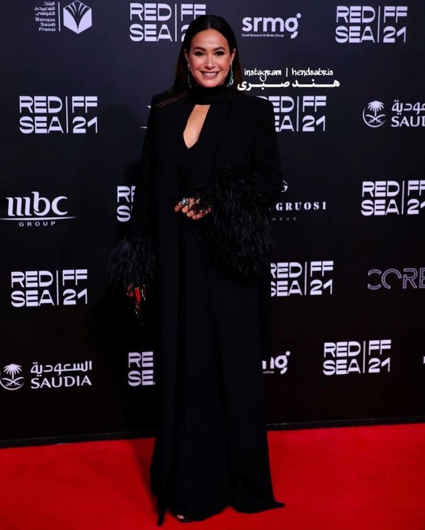 ديالا مكي شاركت في حفل ختام مهرجان البحر الأحمر السينمائي بإطلالتين من توقيع ياسمين هوا. في الإطلالة الأولى اختارت فستاناً أسود اللون