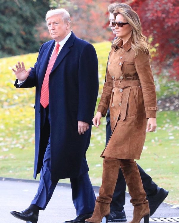 فمنذ أيام، أطلت سيدة أميركا الأولى بلوك جمع أبرز الصيحات الرائجة لموسم خريف وشتاء 2019-2020. وفي التفاصيل، اعتمدت ميلانيا صيحة اللون الواحد أو ما يعرف بالمونوكروم فاختارت اللون البني وهو الأكثر رواجاً لهذا الموسم، وارتدت معطفاً بهذا اللون من علامة Burberry نسّقته مع حذاء عالي الساق باللون نفسه.