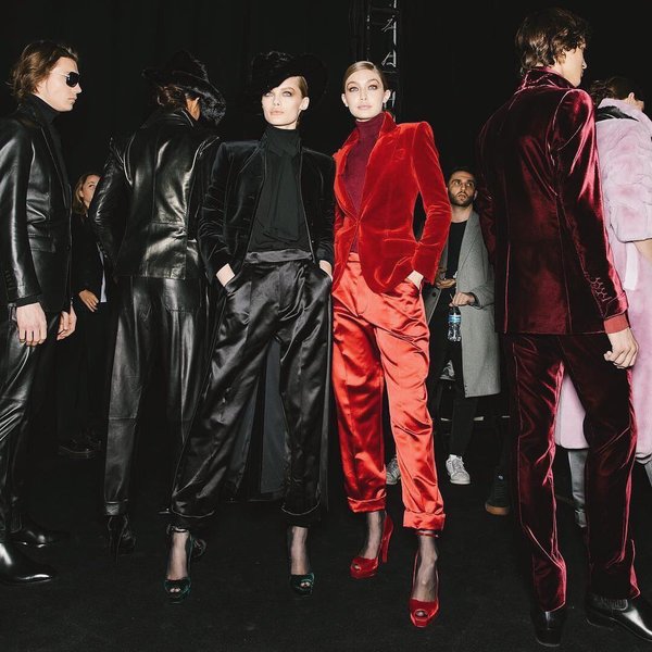 من جانبها، اعتمدت عارضة الأزياء جيجي حديد هذه الصيحة، فدمجت بين عدّة تدرجات وخامات من الأقمشة باللون الأحمر.