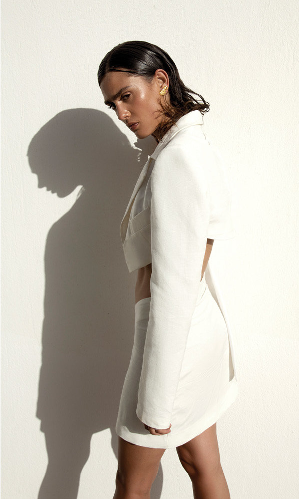 ومع جمالية ريادية في التصميم، تشمل قطعها تشكيلة من السترات القصيرة والسراويل الجلدية والتنانير المتوسطة الطول بالإضافة إلى أطقم متطابقة لبدلات بسراويل. وبصورة أنيقة إنما جريئة، تدمج راضي بشكل ساحر بين العالمَين البسيط والبارز لابتكار قطع متعددة الارتداءات يمكن تنسيقها بسهولة لمناسبات مختلفة، ما يُنتج إطلالات مختلفة تماماً. ووسط تركيز على لوحات الألوان الحيادية، تتضمن المجموعات تدرّجات الأسود والأبيض والبيج الكلاسيكية، ما يتيح الاستثمار في ملابس يمكن ارتداؤها من موسم إلى آخر.