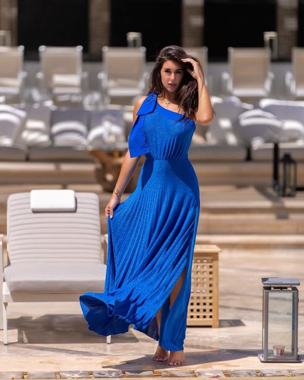 الفستان الطويل ذات الكتف الواحد هو الخيار الأكثر شيوعاً ويضمن لك اطلالة أنيقة في العيد بالتأكيد.