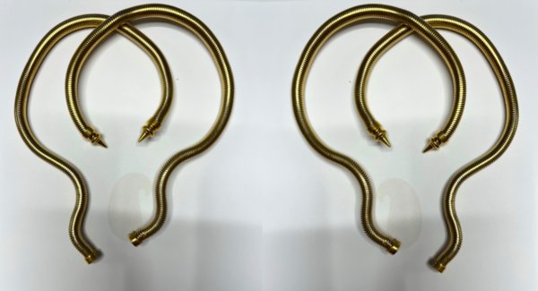 لقاء وتعاون يشعرنا بالفخر إذ أعادت الأختان تجسيد الحضارة والثقافة المصرية الراقية وتاريخها العريق متبعتين خطوات ورؤية Olivier Rousteing في مجموعته الذي بدوره أعاد الماضي بروحٍ عصرية جديدة من خلال الأزياء التي عُرضت وكان هنا للأختين لمسة خاصة في قميصٍ مصنوع من مادة الـ Resin وسوار غريب نوع الشيء باللون الذهبي.