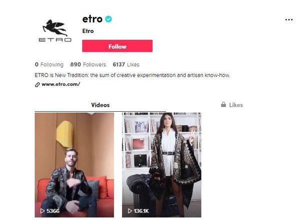 وفي جديد انضمام العلامات إلى تيك توك، أعلنت علامة Etro تدشين حسابها الرسمي على هذه المنصة. ليس هذا فقط، فبهذه الخطوة، تنضم العلامة لـTikTokFashionMonth# للكشف عن مجموعة ربيع وصيف 2021.