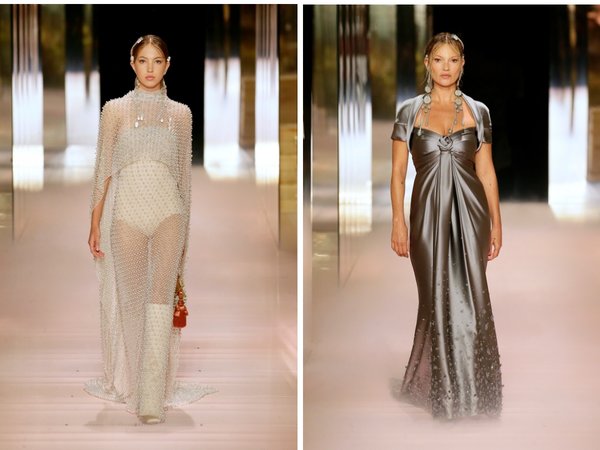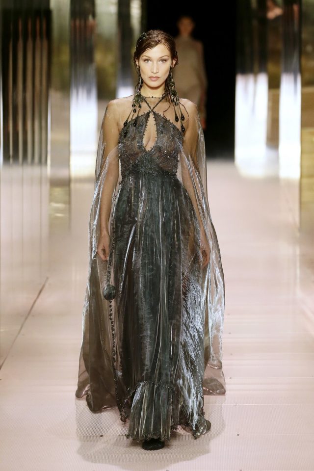 تضمنت مجموعة الهوت كوتور لربيع من Fendi 19 تصميماً، فتميزت الفساتين بقصاتها الانسيابية ذات القماش الناعم الذي تنوع ما بين الأورغانزا والساتان. حرفية الخياطة الراقية رصدناها بشكل كبير في الأقمشة الشفّافة التي زينّت بأحجار الكريستال إلى جانب الدانتيل.