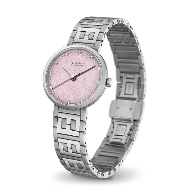 إنّها نسخة جديدة من ساعات Forever Fendi التي أتت كي تكون بمثابة تحيّة لتراث Fendi من خلال شعار FF الأيقوني والمتشابك والذي يسيطر على التصاميم والذي يعتبر من أهمّ خصائص أو DNA العلامة، هذا الشعار الذي رأيناه بارزاً على سوار الساعة.
