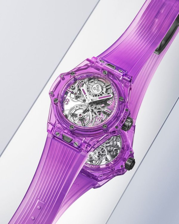 أتت ساعة بيغ بانغ توربيون أوتوماتيك الجديدة بنسخة حصرية من السفير البنفسجي وهي الساعة لأولى في العالم تتميز بلون بنفسجي شفاف.