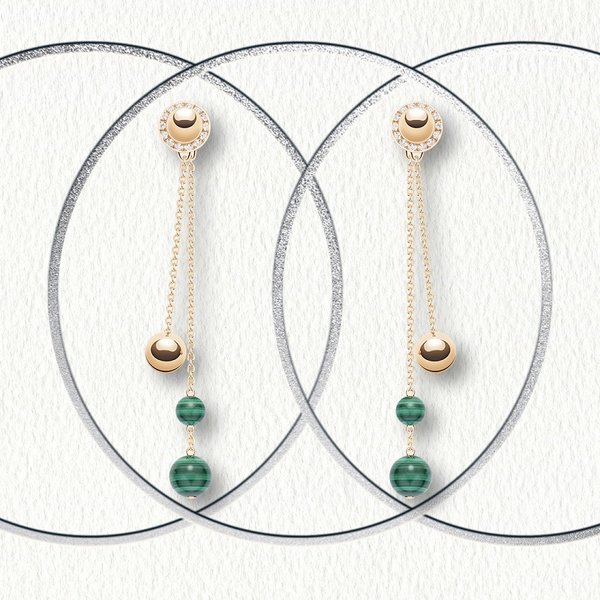 في هذه المجموعة الاستثنائية، أدخلت الدار أحجار المالاشيت والعقيق الأحمر والفيروز إلى التصاميم التي أتت مرصعة بأحجار ملونة رائعة وأقراطاً متدلية وحلياً جالبة للحظ.