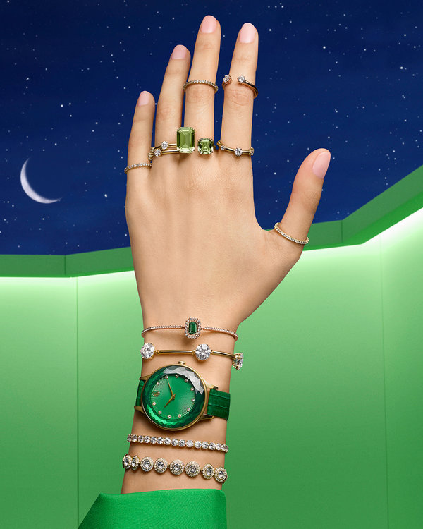 تتألّق مجموعة رمضان من Swarovski بالألوان الرائعة والتصاميم المميزة التي تجعلنا نتأمل في معنى الحياة وننبهر بصور الجمال والتآخي المحيطة بنا من كلّ حدبٍ وصوب. فتنضح القطع بدرجات الأخضر التي تبعث السلام.