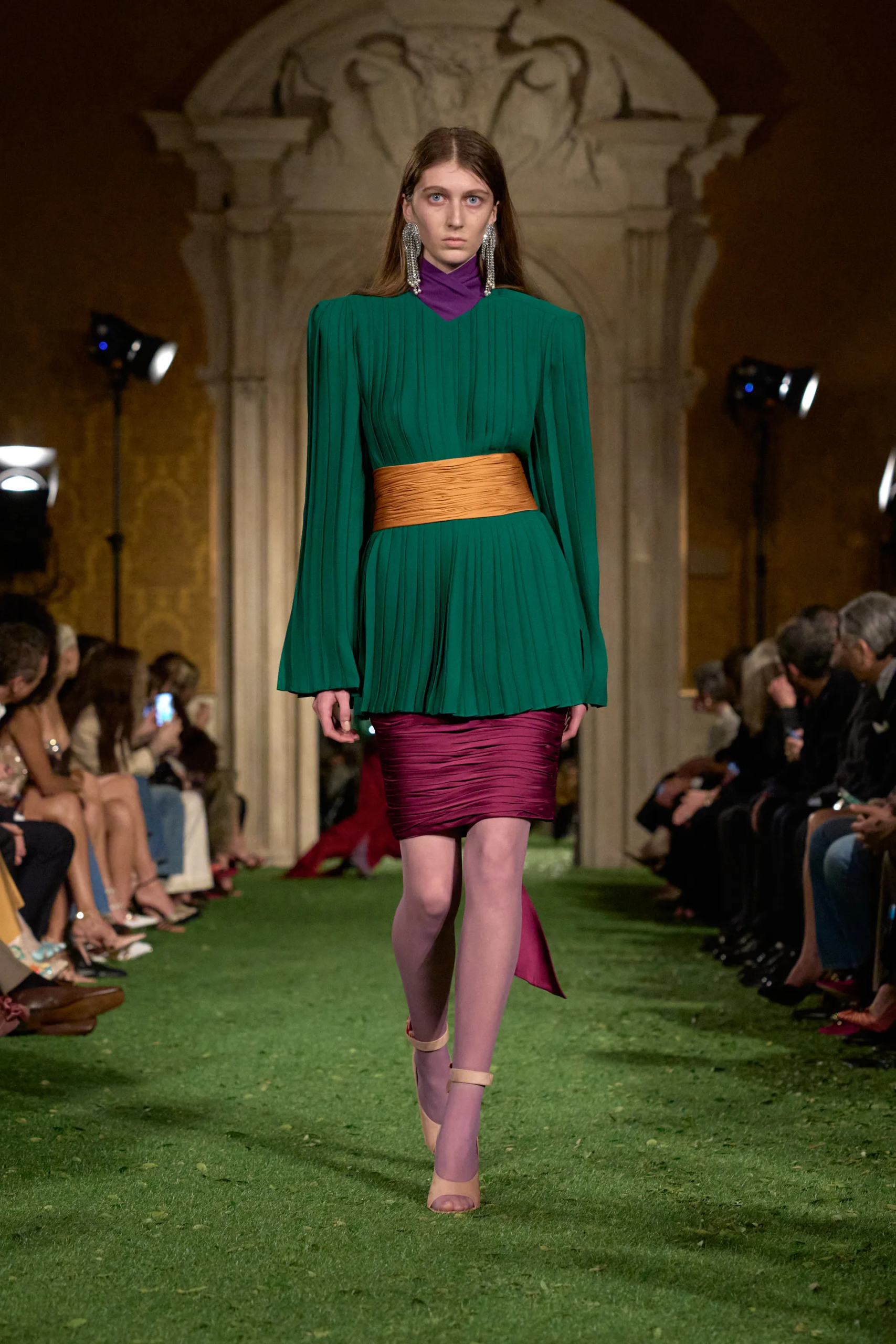 وتابع قائلًا: “من خلال هذا التوتر الذي يسري عبر الحجر والنسيج على حد سواء، يكشف عرض الأزياء Interferenze عن التصادم بين الانضباط والتمرّد، بين الخفة والجاذبية، بين الضوابط وكسر القواعد، بين الشفافية والعتامة، بين الامتثال والتجاوز. وما يبرز في نهاية المطاف هو مجموعة تحتفي بالنظام وتكشف في الوقت ذاته عن هشاشته الهيكلية، وتعرضه لإمكانية تجاوز ذاته.”