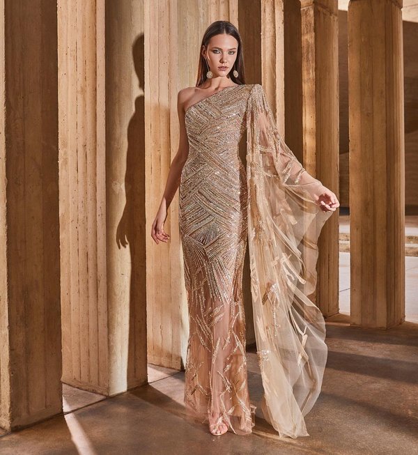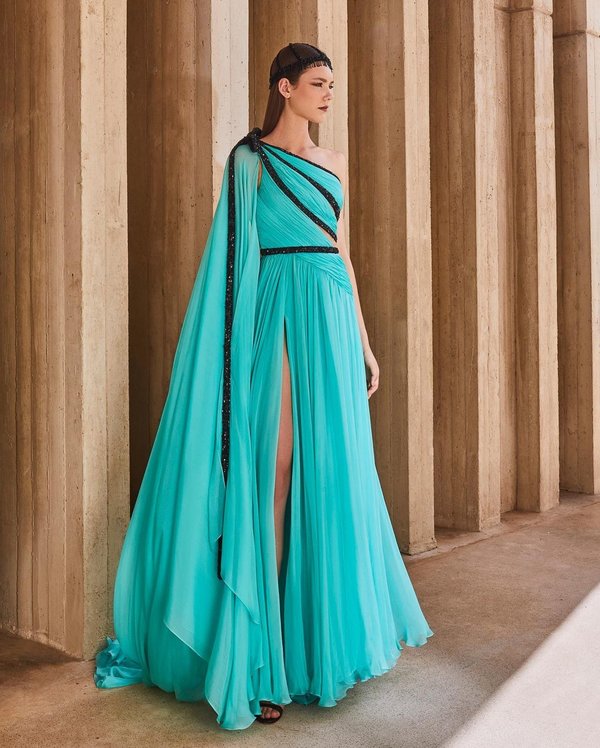 تضمن مجموعة Azzi & Osta لربيع وصيف 2022 فساتين سهرة قصيرة مصنوعة من أقمشة الترتر والمخمل والكريب والتول. وتتزين بفتحات جانبية أنيقة وقصات صدر منحوتة.
