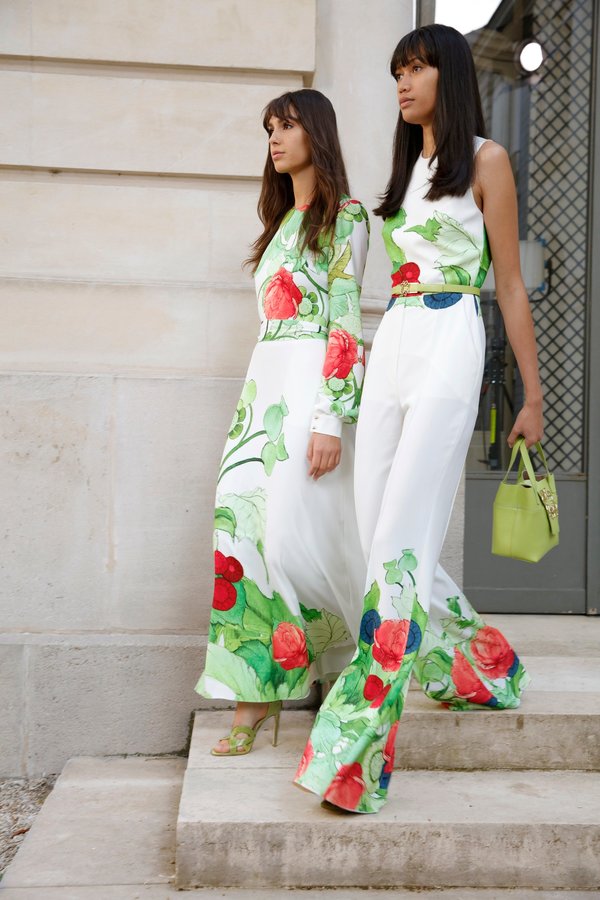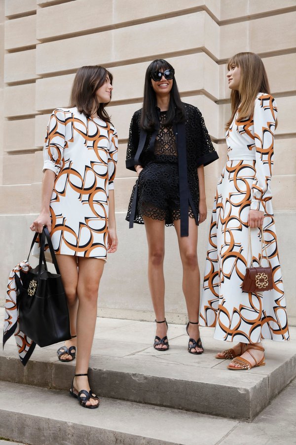نقشة الأزهار زيّنت الأزياء، إلى جانب الملابس المطبعة بشعار الدار الجديد المستوحى من أول حرفين من اسمها E وS .