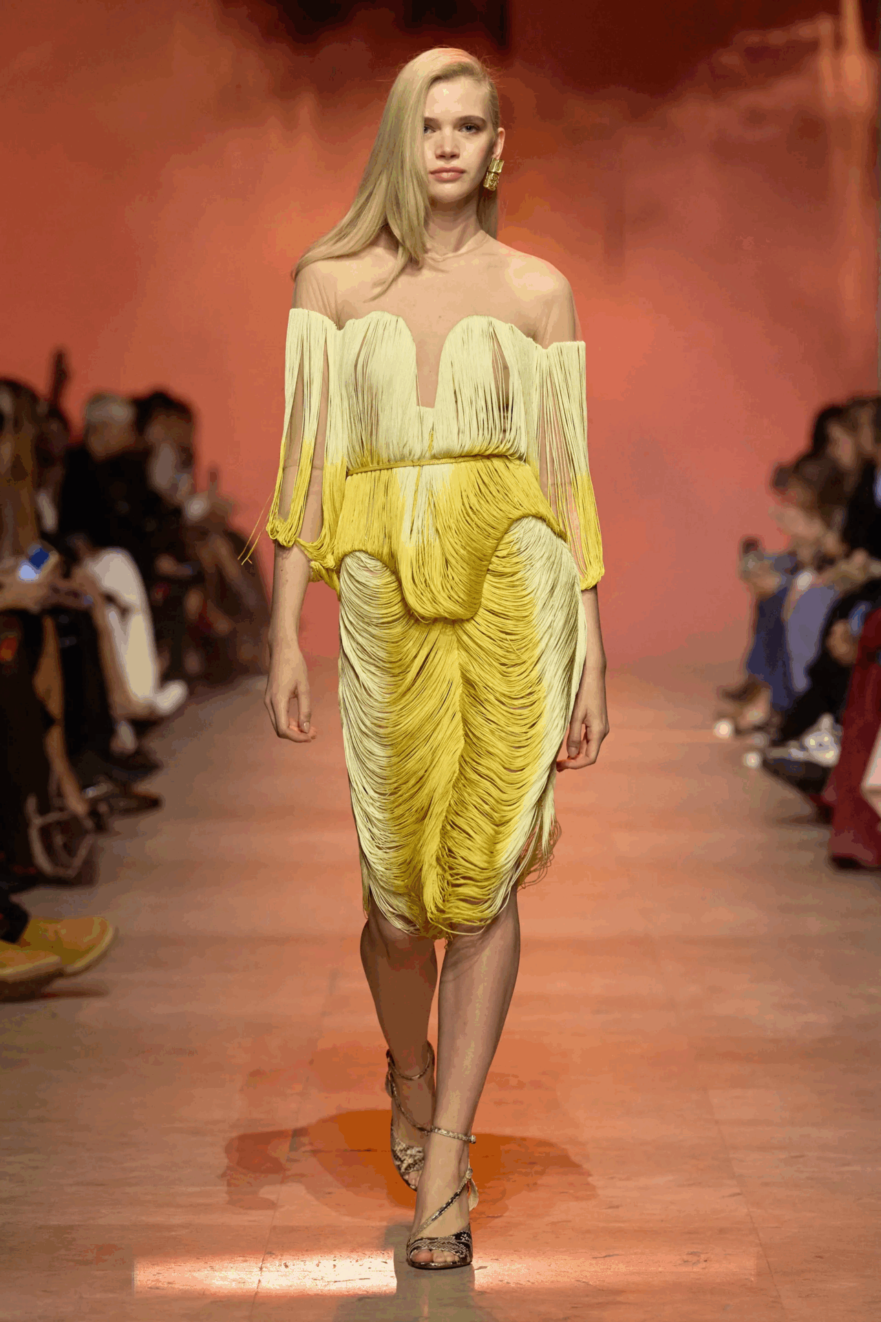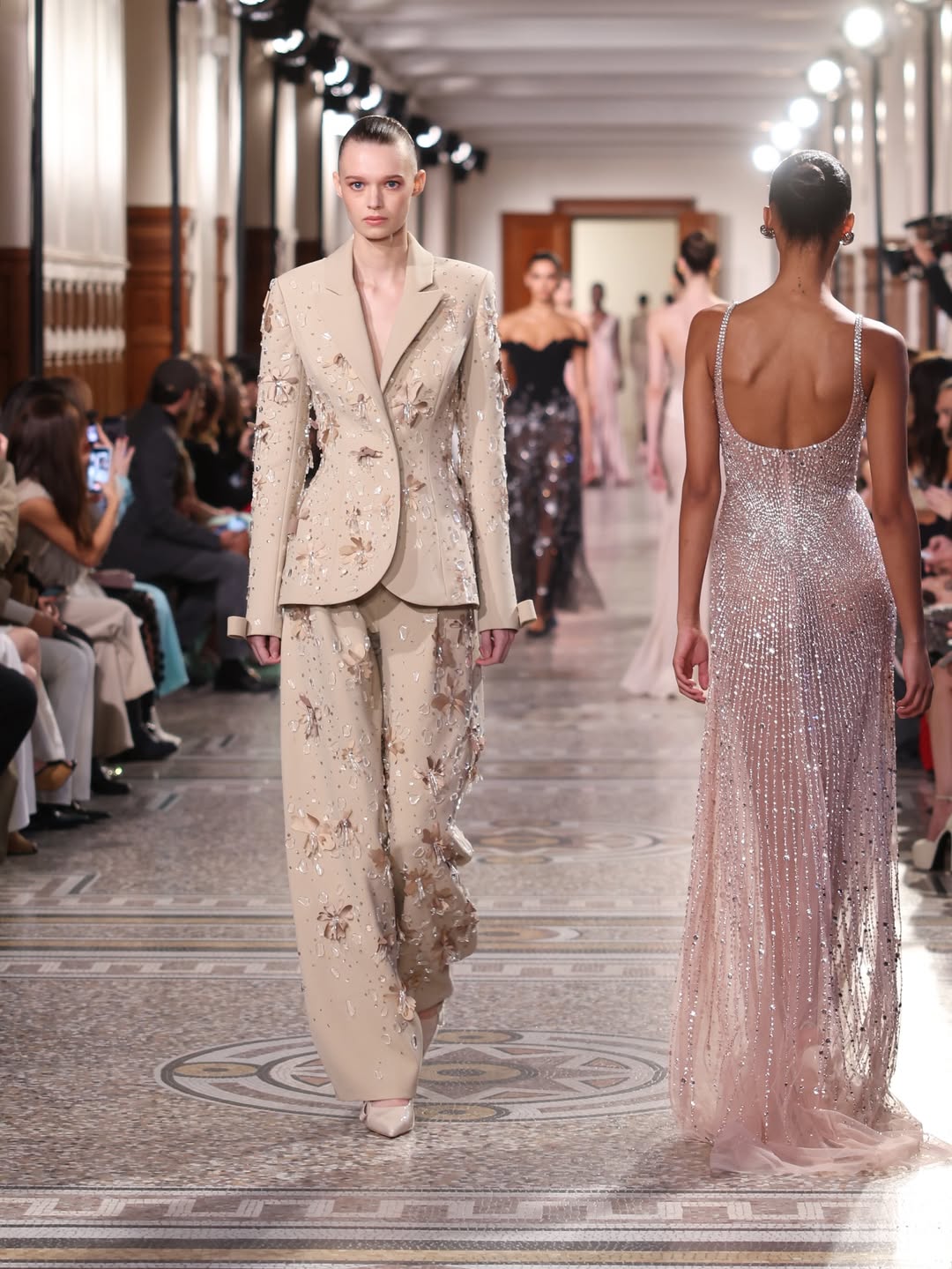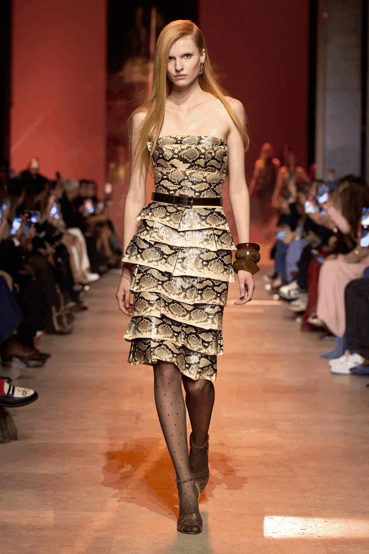 اخذنا إيلي صعب في رحلةٍ ساحرة بين الماضي والحاضر، بين الحركة والستايل البارز من خلال التركيز على التنانير الضيقة عالية الخصر، الجوارب الطويلة المنقّطة ومعاطف الترنش الجلدية.