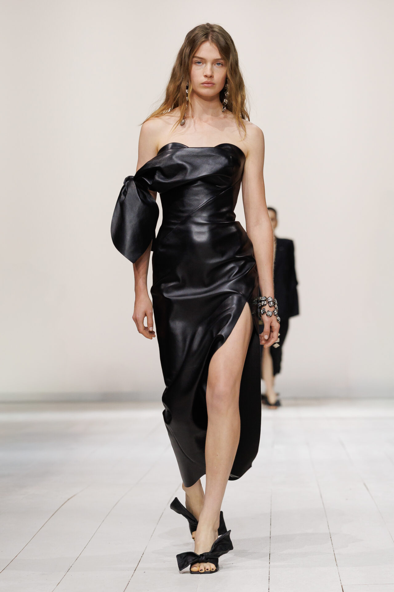 جاءت التصاميم نحتية دقيقة التفاصيل، جريئة في ألوانها وأشكالها، مصنوعة من خامات فاخرة كالقُطن والحرير وجلد الأفعى، لتوازن بين الترف والبساطة في آنٍ واحد.