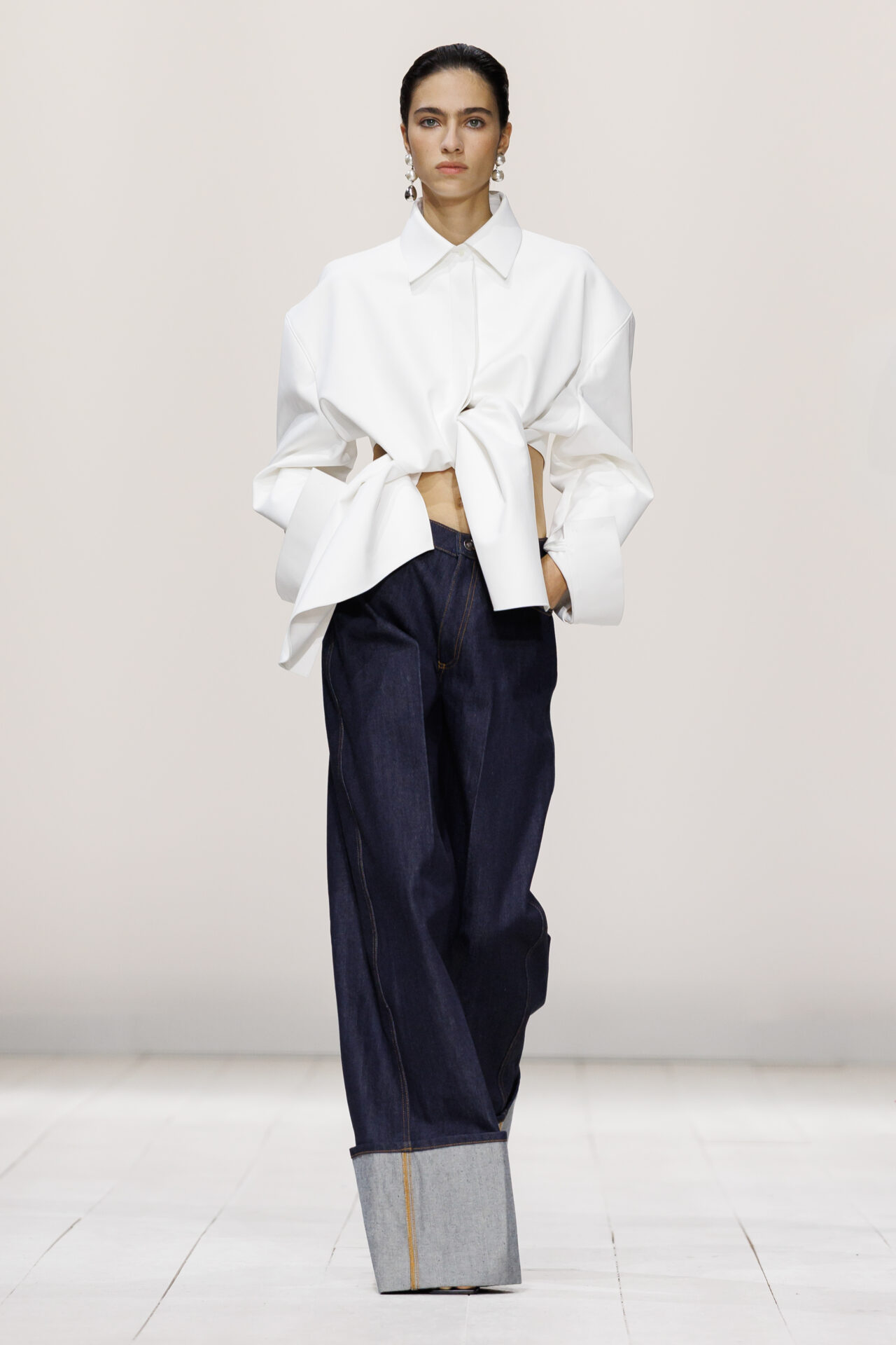 قدمت دار Maison Margiela مجموعة من التصاميم الجديدة إلى جانب إعادة تقديم وتطوير أفكار أرشيفية من إرث الدار حيث تم التركيز على استخدام الجلد، الصوف والدنيم طبعًا.