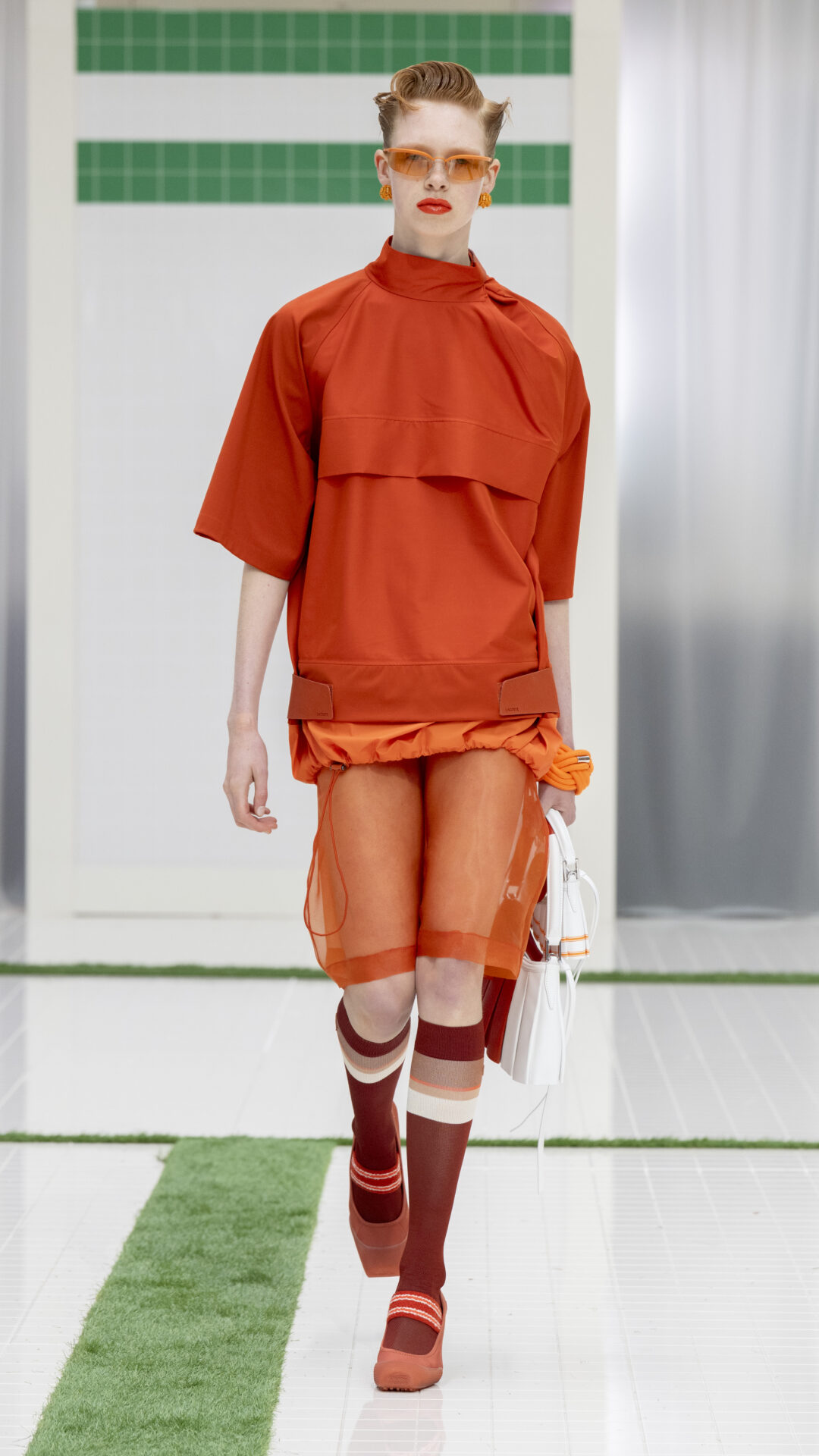 تعكس الألوانحنينًا للملابس الرياضية القديمة، حيث يلتقي البرتقالي الحيوي بالأزرق، مع درجات الأخضر الزيتوني، مولدةً جميعها طاقة رياضية متوازنة.
