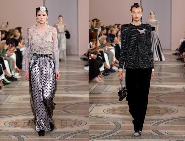 مجموعة الهوت كوتور التي قدّمها جورجيو أرماني Giorgio Armani مناسبة بشكل خاص للمناسبات الكبيرة والسهرات، فقد غلب عليها القماش اللامع المزيّن بحبيبات الكريستال.