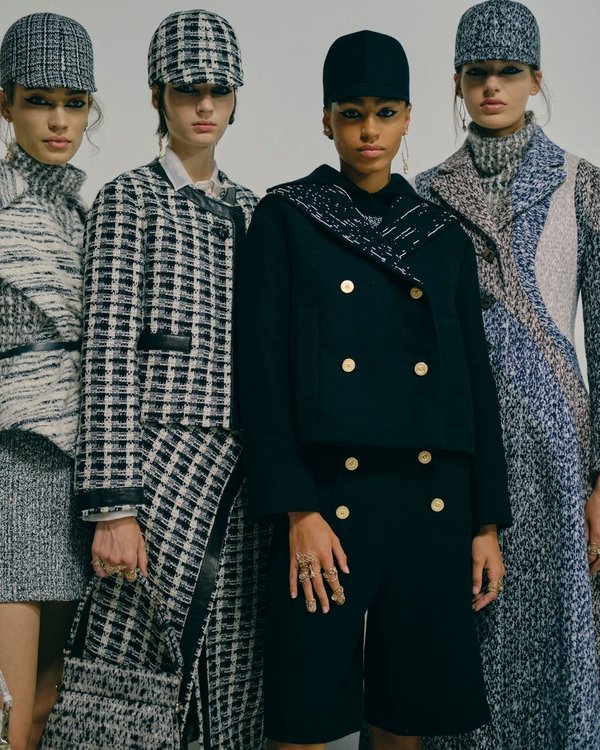 مجموعة الهوت كوتور من Dior لخريف وشتاء 2022، أتت غنية بنقوش المربّعات والتويد والتركيبات والأبعاد المختلفة باللونين الأبيض والأسود. ومرة جديدة ها هي الدار تستلهم من عالم الفن، وهذه المرة من كتاب "خيوط الحياة" Threads of Life للفنانة كلير هانتر المتخصصة في مجال الأقمشة.