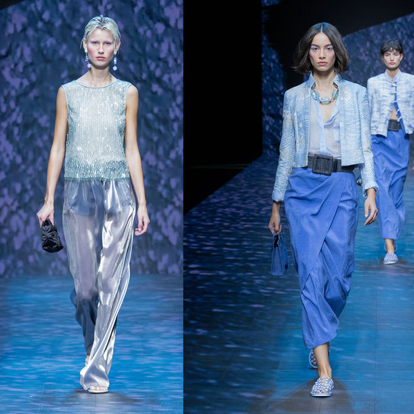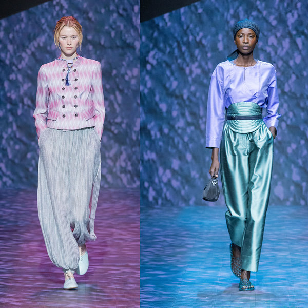 إبتكر Armani هذه المجموعة لتكون الأكثر إنسيابية وراحة، كما تلاعب في لوحة الألوان حيث عانقت الألوان المحايدة مثل لون الأسود والأبيض بتدرجات ألوان الباستيل من البنفسجي والأخضر.